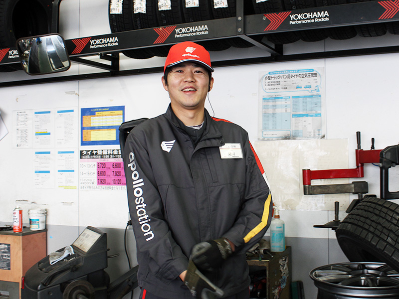 洗車・コーティングのほか、オイル交換、タイヤ交換も担当しています。洗車やコーティングで車がすごくキレイになった時や、それを見てお客様が喜んでくださった時は特にうれしいですね。